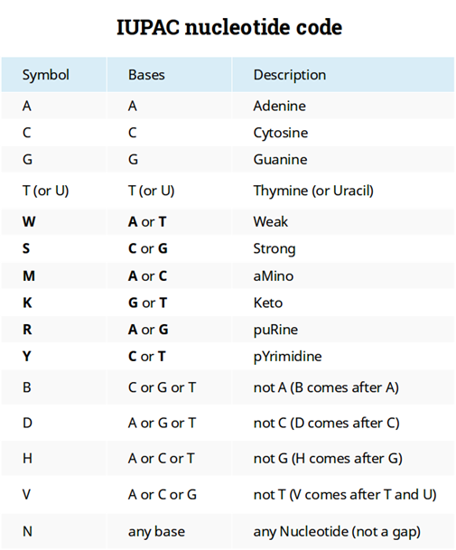 Como decorrência do problema eventual de baixa resolução no cromatograma em algumas posições, um código de ambiguidade de nucleotídeos foi estabelecido pela IUPAC durante o Comitê de Nomenclatura da União Internacional de Bioquímica (NC-IUB), em 1984 (Cornish-Bowden 1985).